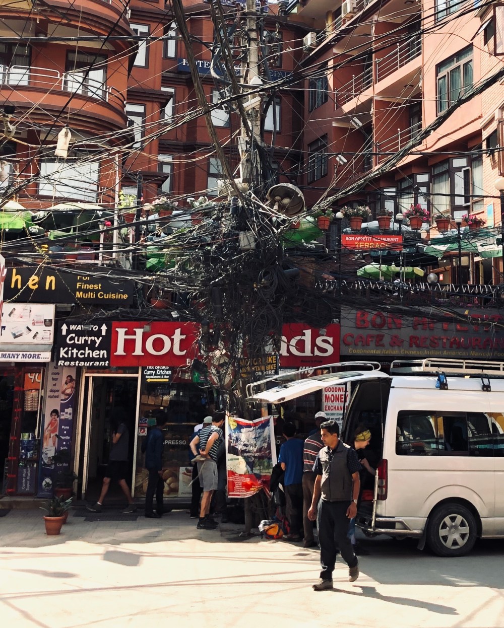 Batohy na nas cekaly, taxik taky a za chvili jsme byli na hotelu. Hotelova recepcni se nas ptala jake treky mame v planu a kdyz jsme rekli, ze Lower Dolpo cela roztala … ma to tam pry rada a asi tam nikdo nejezdi. Pokoj luxusni, vybaleno a 5 min od hotelu je irish pub. Cestou jsme pochopili, ze nejsilenejsi povolani v Nepalu je byt elektrikar.