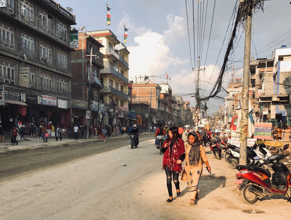 Cesta na periferii Karhmandu cim dal vic pripominala pisecnou bouri, kterou jsme zazili v Jordansku … je neuveritelne, kolik spiny a prachu tu je na kazdem kroku … a jak se prach viri na ulici … uz chapeme proc kazdy druhy tu ma rousku.