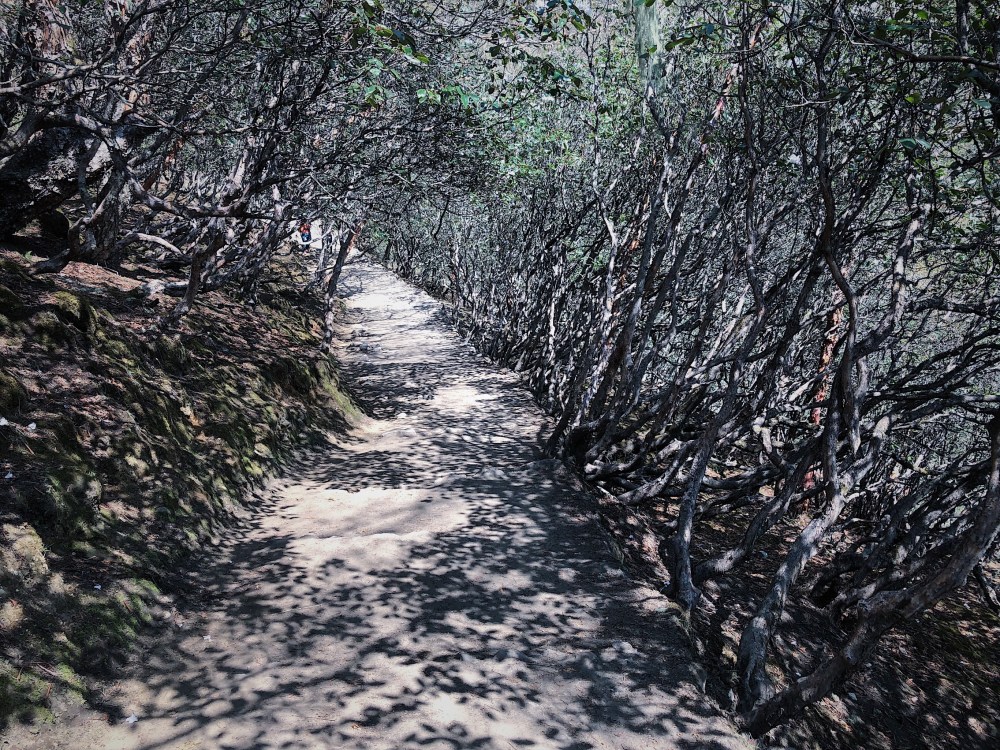 Cesta do Tengboche se klikati jako had mezi rododendrony a splha a splha … je to pres 600 m prevyseni v kuse. Celou dobu se nam na obdiv vystavuje Thamserku. Se svymi 6.600 metry je obrovska, majestatni, tyci se vysoko nad nami … presto je porad o 2 km nizsi nez Everest 🙂.