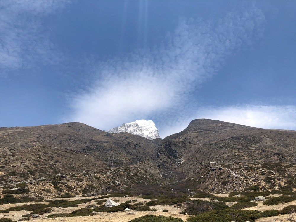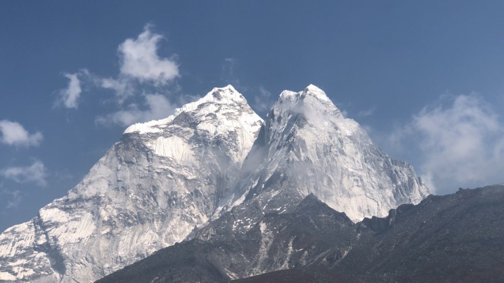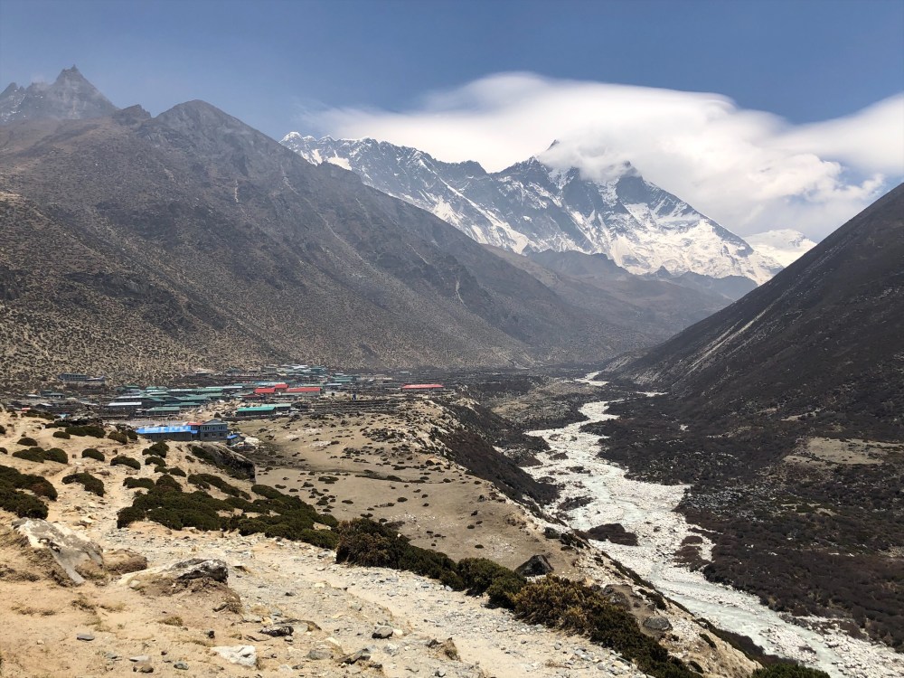 Po prave ruce mame cim dal krasnejsi vyhledy na horu Ama Dablam (6814m). Je to jedna z nejfotografovanejsich a nejfotogenictejsich hor Nepalu.
