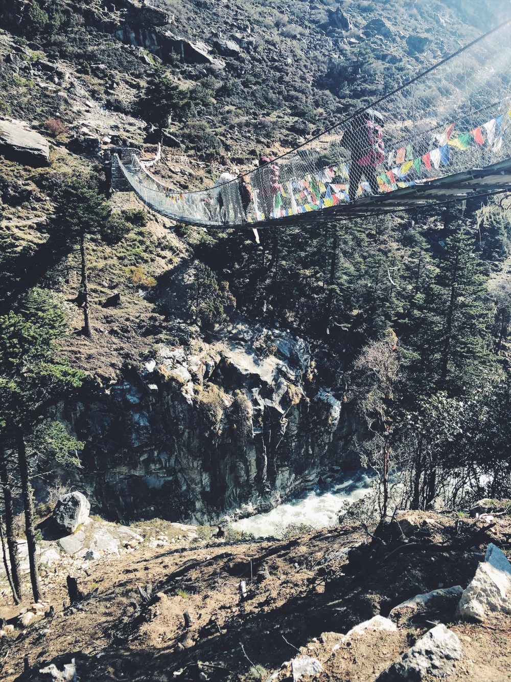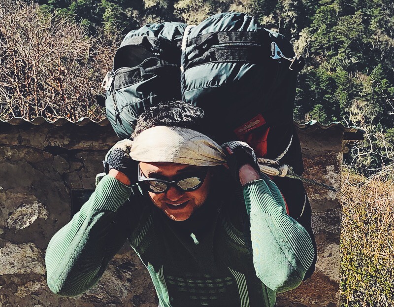 Kazdou chvili se setkavame s nosici na odpocivadlech. Napada mne, ze si tradicni zpusob noseni nakladu zkusim a jednoho pozadam, aby mi sve zavazadlo pujcil. Neni to tak zle jak to vypada, nicmene co by mi to udelalo s krcni pateri po par hodinach chuze, tezko rict.