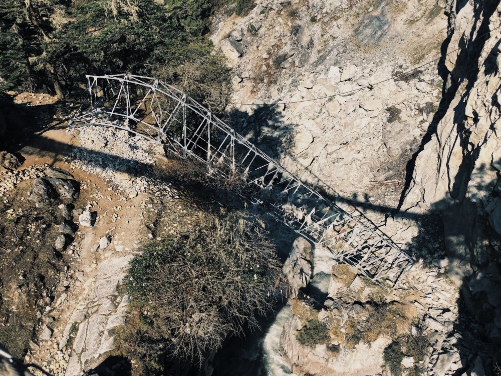 Vzhuru jdeme neustale podel ricky, ktera vyteka z ledovce Khumbu. Mijime spadly stozar, zjevne nezapojeny, patrne se jen testovala jeho stabilita. Neuspel.