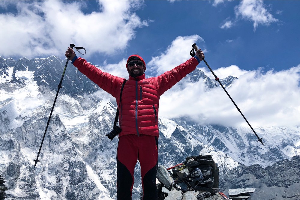 Stastne se dostavame na vrchol a je to skutecne ten pravy. Mapa v mobilu to potvrzuje a i nadmorska vyska sedi. Je to nas nepalsky vyskovy rekord, neco nad 5,5km.