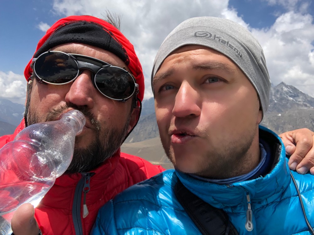 Delame fotky, video celeho udoli a nejake vitezne selfie (i mne k tomu euforie okamziku donutila). Liborovi a Pavlovi timto dekujeme za skvele slivovicky, ktere se dostaly az takto vysoko. Zitra se s timto udolim rozloucime a tato vyhlidka je adekvatni tecka.